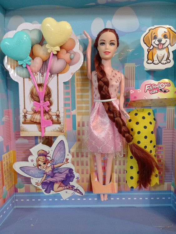 ای عروسک زیبا دارای مو بلند و یک دست لباس و ۲ عدد بادکنک میباشد.