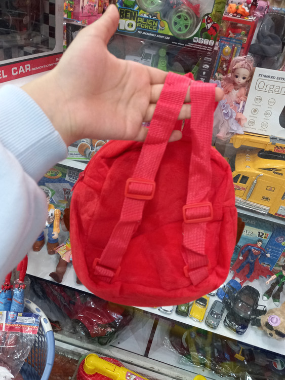 کوله پشتی عروسکی بچگانه از جنس پارچه ای مخمل با کیفیت تهیه شده است.همچنین این کوله ها قابل شستشو میباشد.