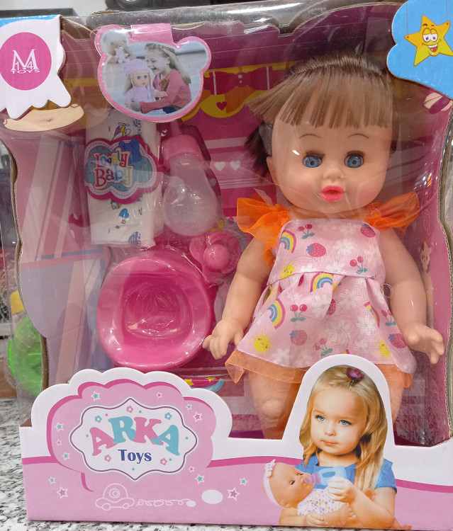 این عروسک موزیکال و توانایی نشستن در توالت فرنگی را دارد.