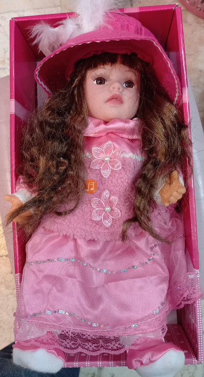 این عروسک زیبا آواز خوان و اندازه آن ۱۲ اینچ میباشد.