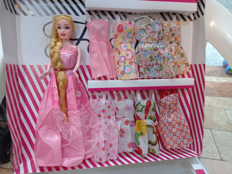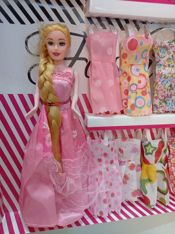 عروسک باربی مو بلند وارداتی همراه ۸ دست لباس