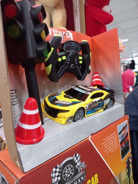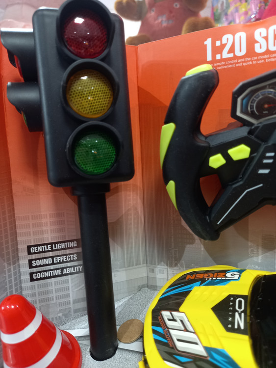 ماشین کنترلی مسابقه ای دارای یک چراغ راهنما است که با فشار دادان دکمه روی چراغ راهنما روشن میشود و چراغ های آن روشن و موقع تغییر رنگ چراغ صدا میدهد.