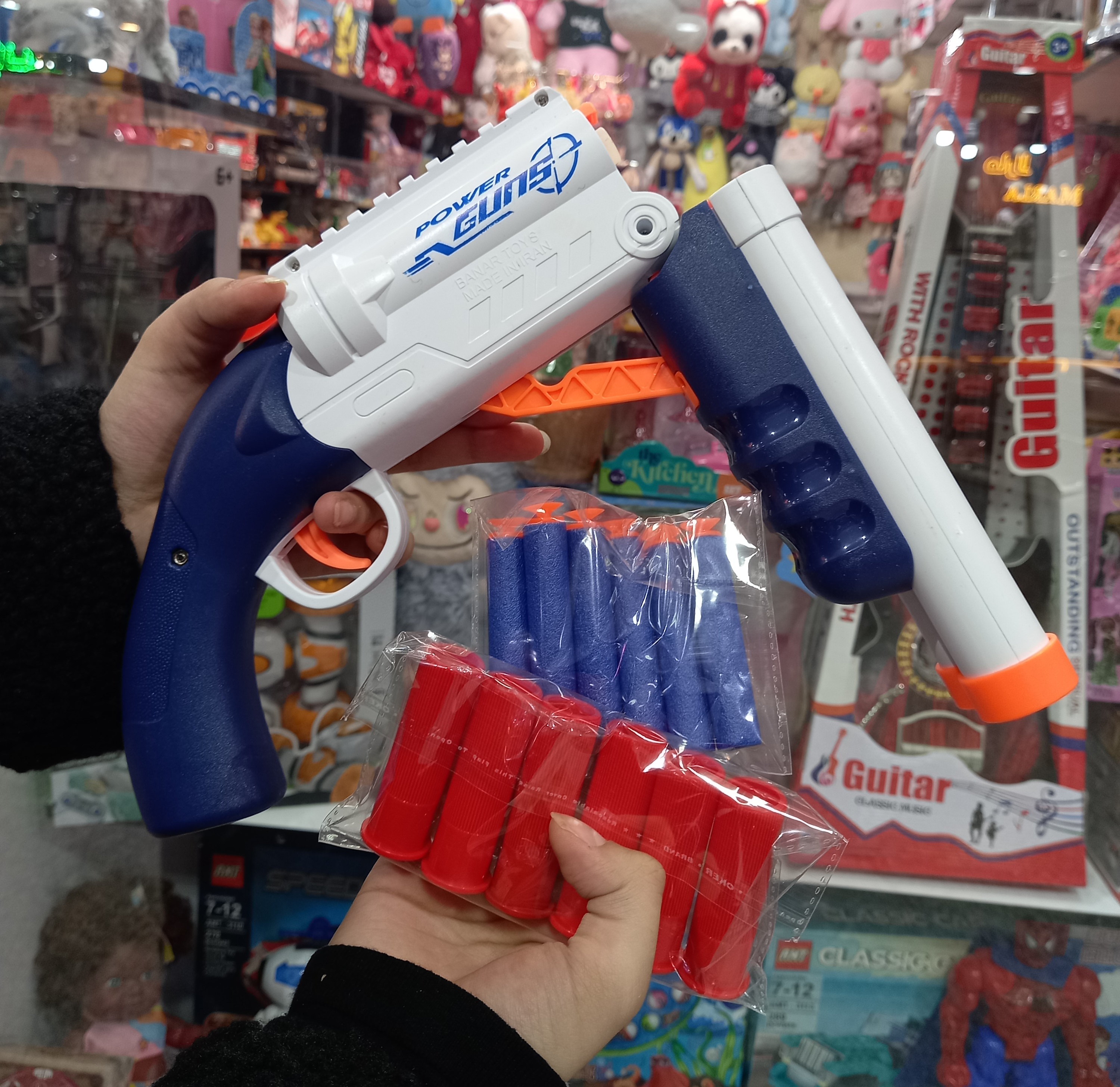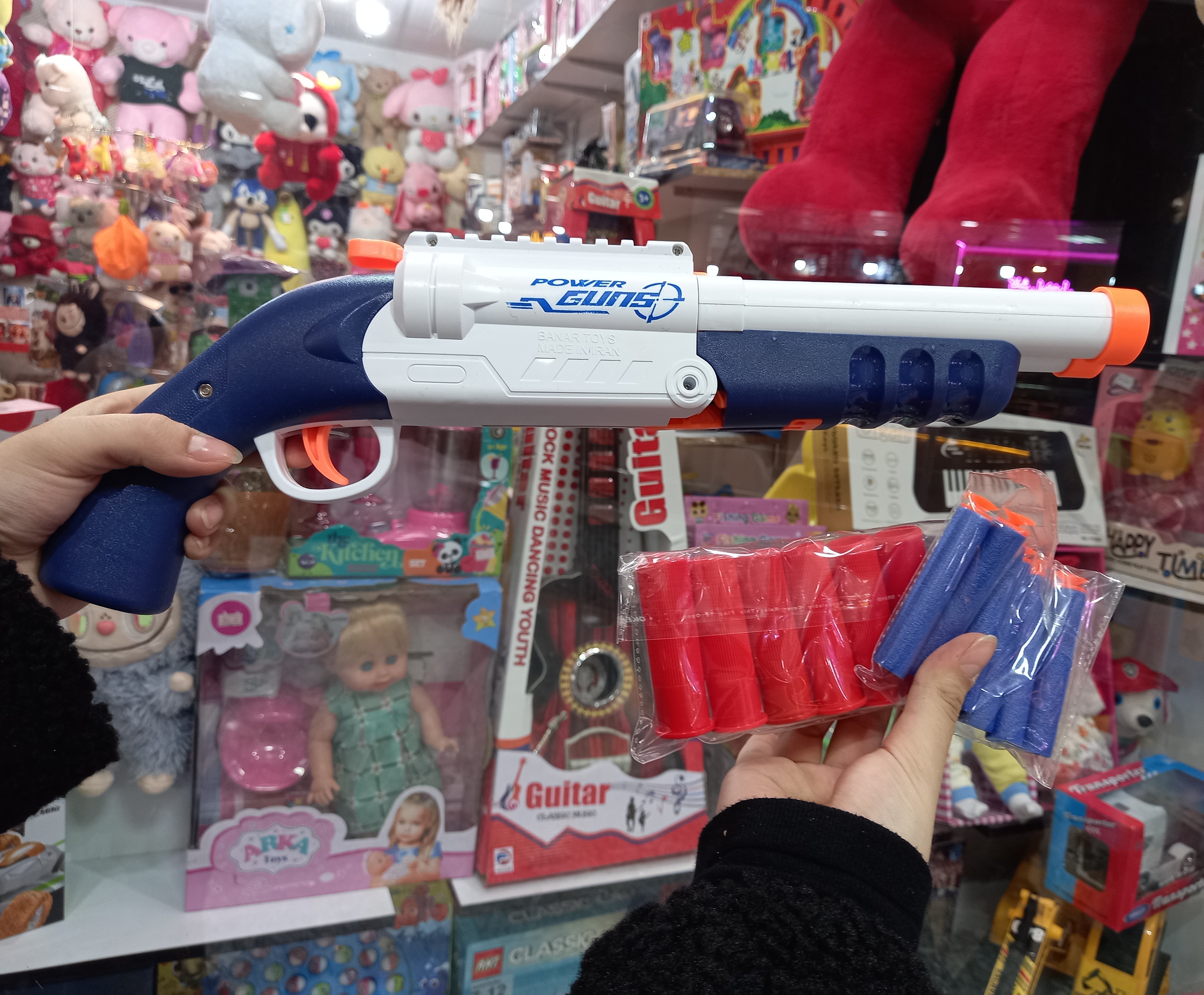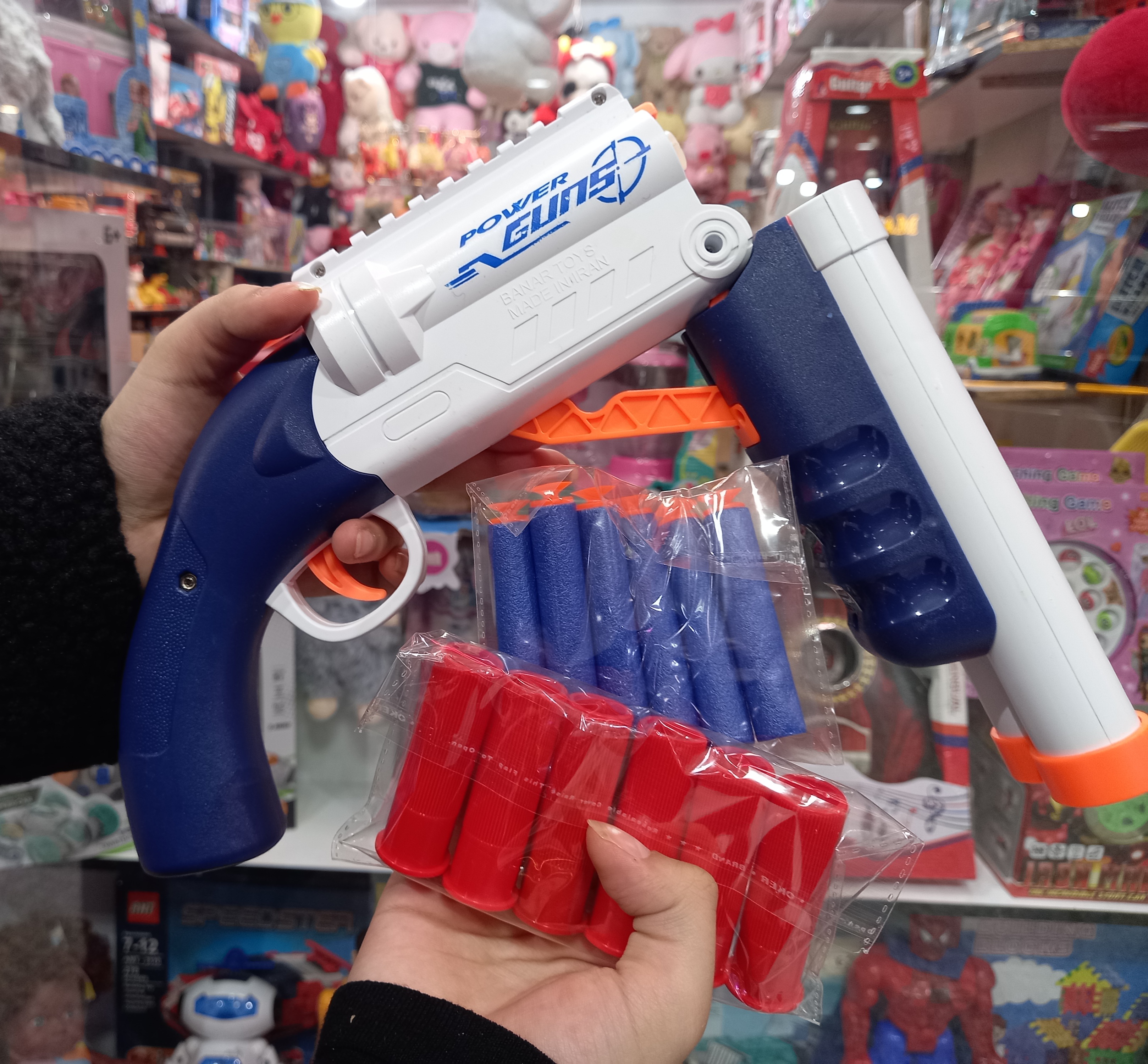 این محصول یک تفنگ شاتگان کمر شکن میباشد که قابلیت پرتاب تیر اسفنجی و فومی را با قابلیت پوکه پران را برای بازی و سرگرمی کودکان دارد.