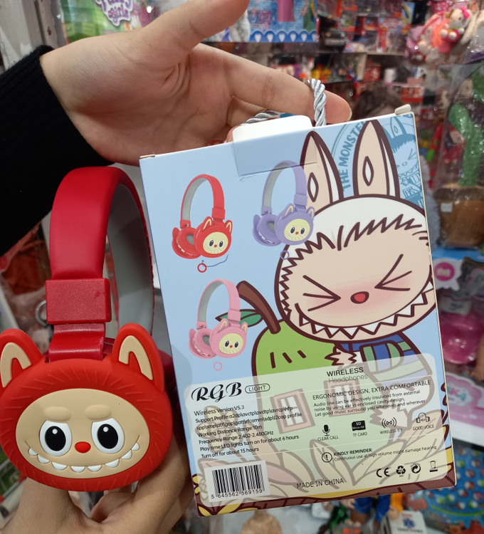 هدفون شارژی طرح لبوبو مناسب برای کودکانی که علاقه به گوش دادن موزیک هستند.