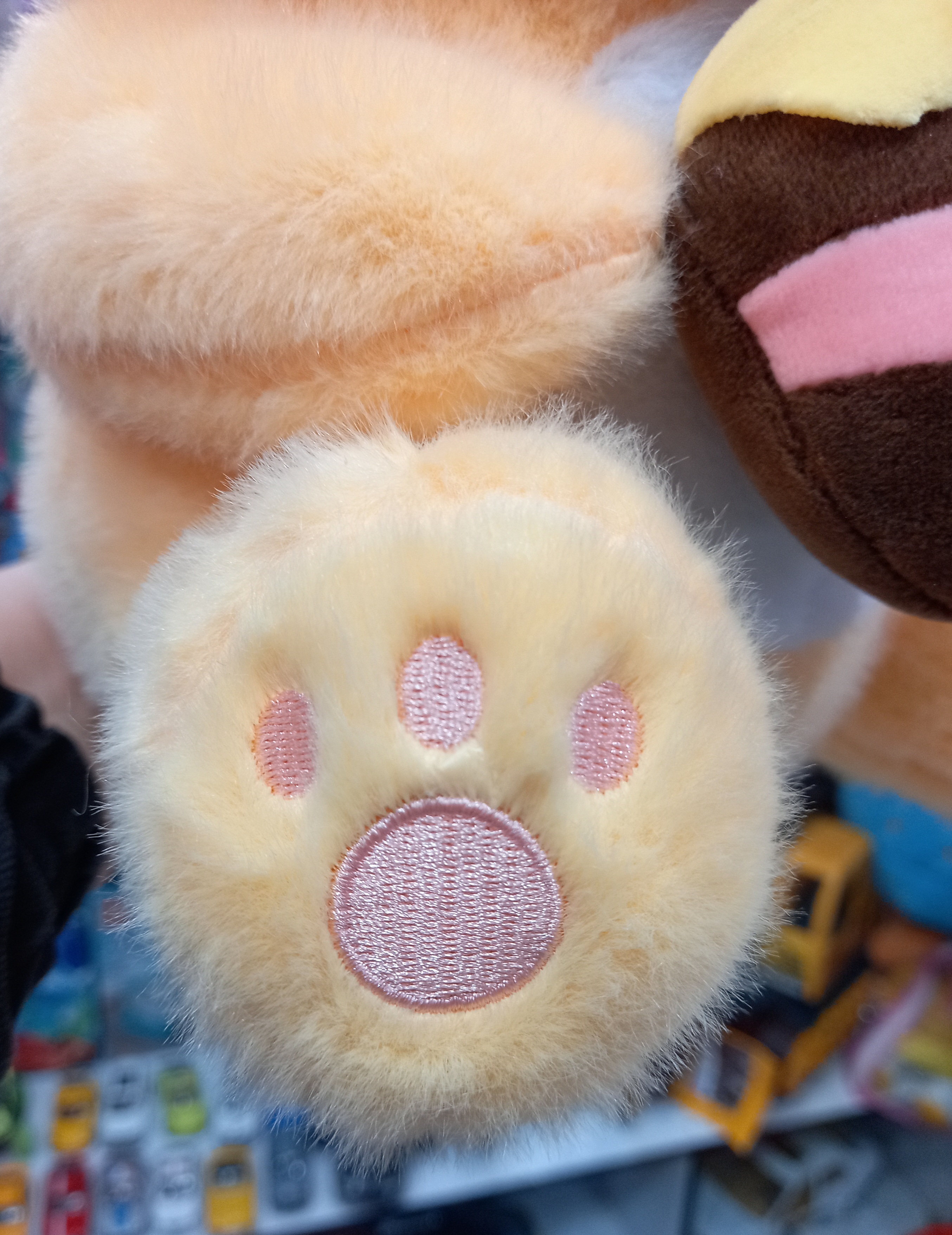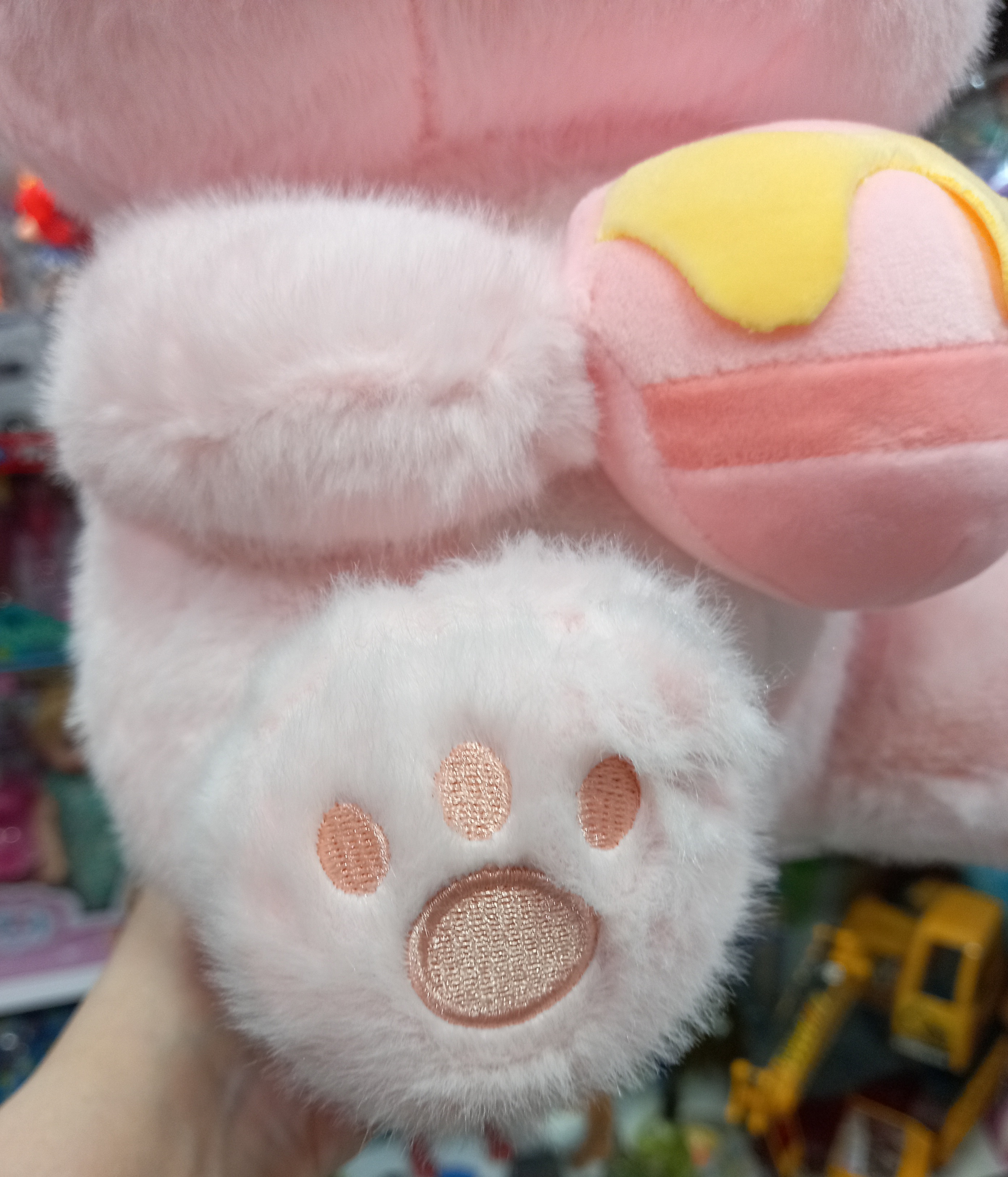 چشم و دماغ و پنجه های این خرس زیبا گلدوزی میباشد.از کیفیت و نرمی این عروسک هر چه بگوییم کم است.