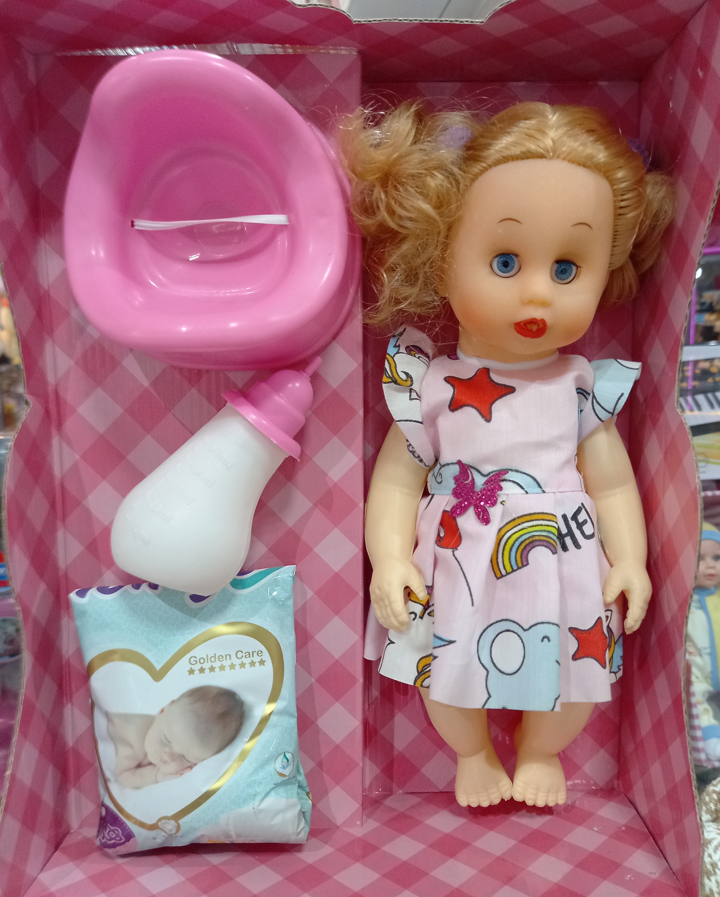 این عروسک موزیکال و توانایی نشستن در توالت فرنگی را دارد.