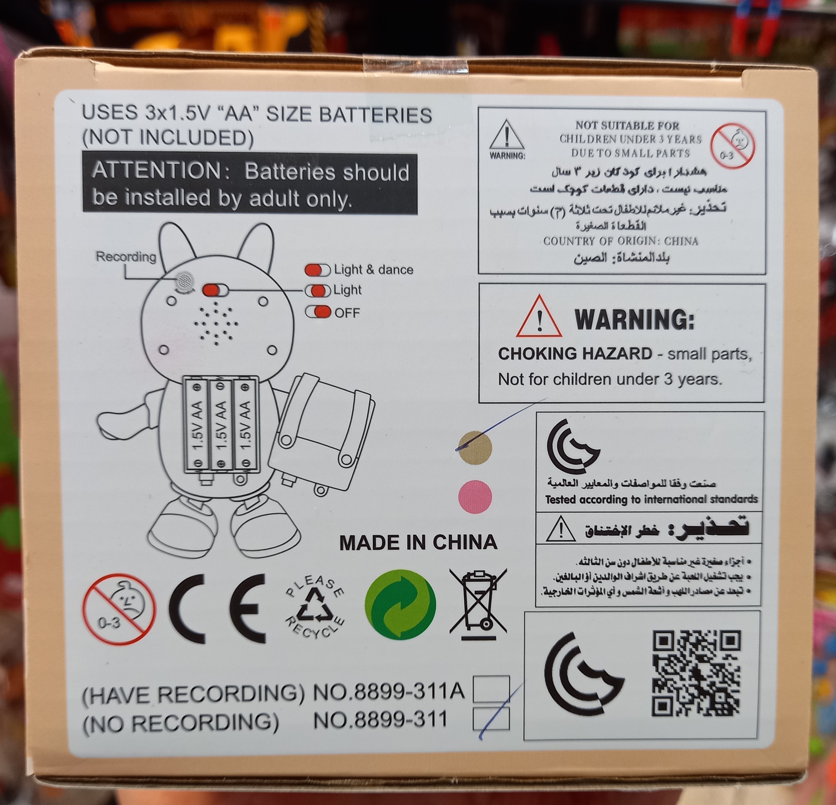 موزیکال،رقاص،راه رونده و چراغ دار،دارای دکمه روشن و خاموش و باطریخور