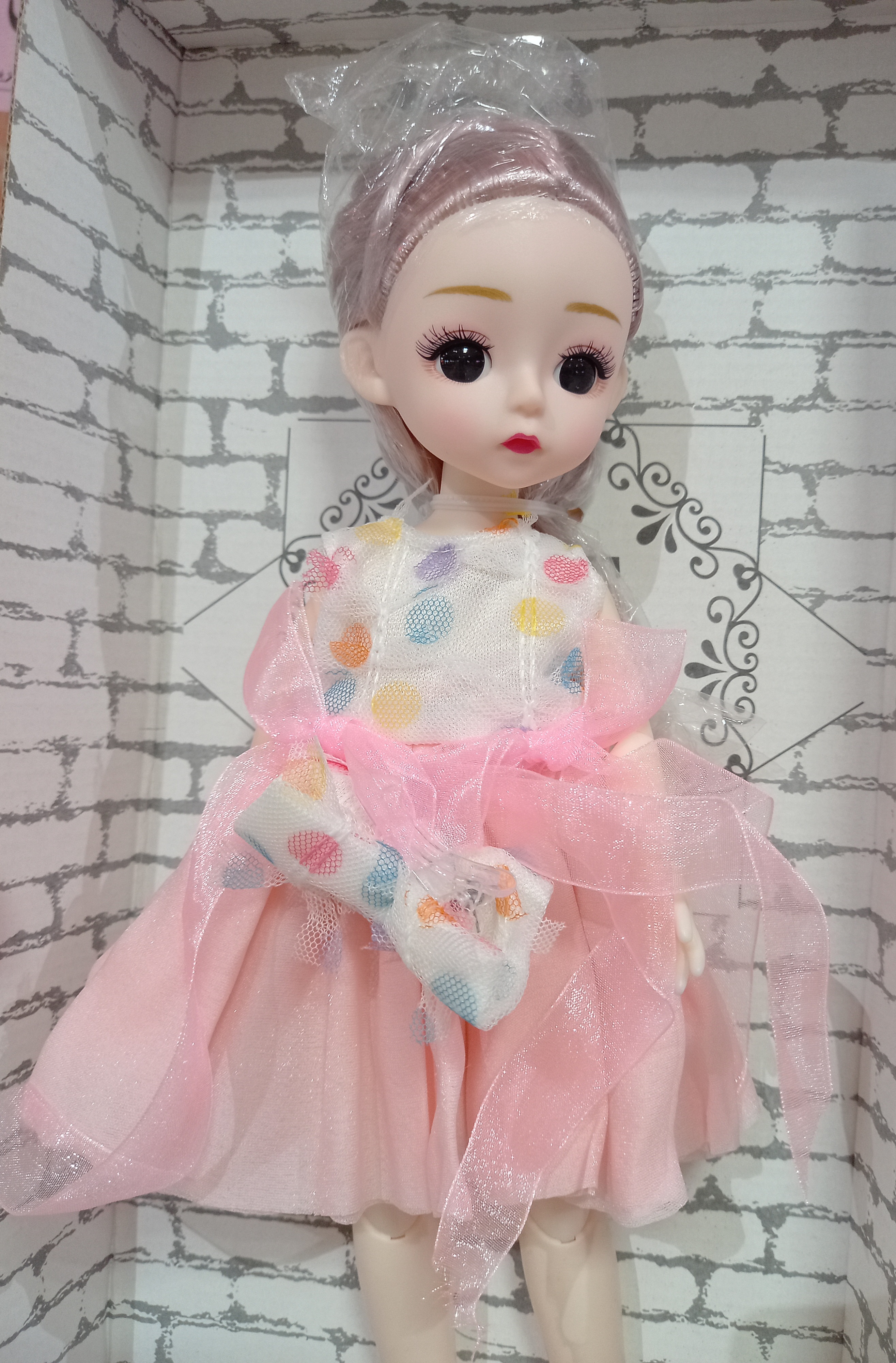 عروسک باربی تمام مفصلی چشمتیله ای ۳۰ سانتی متر میباشد.