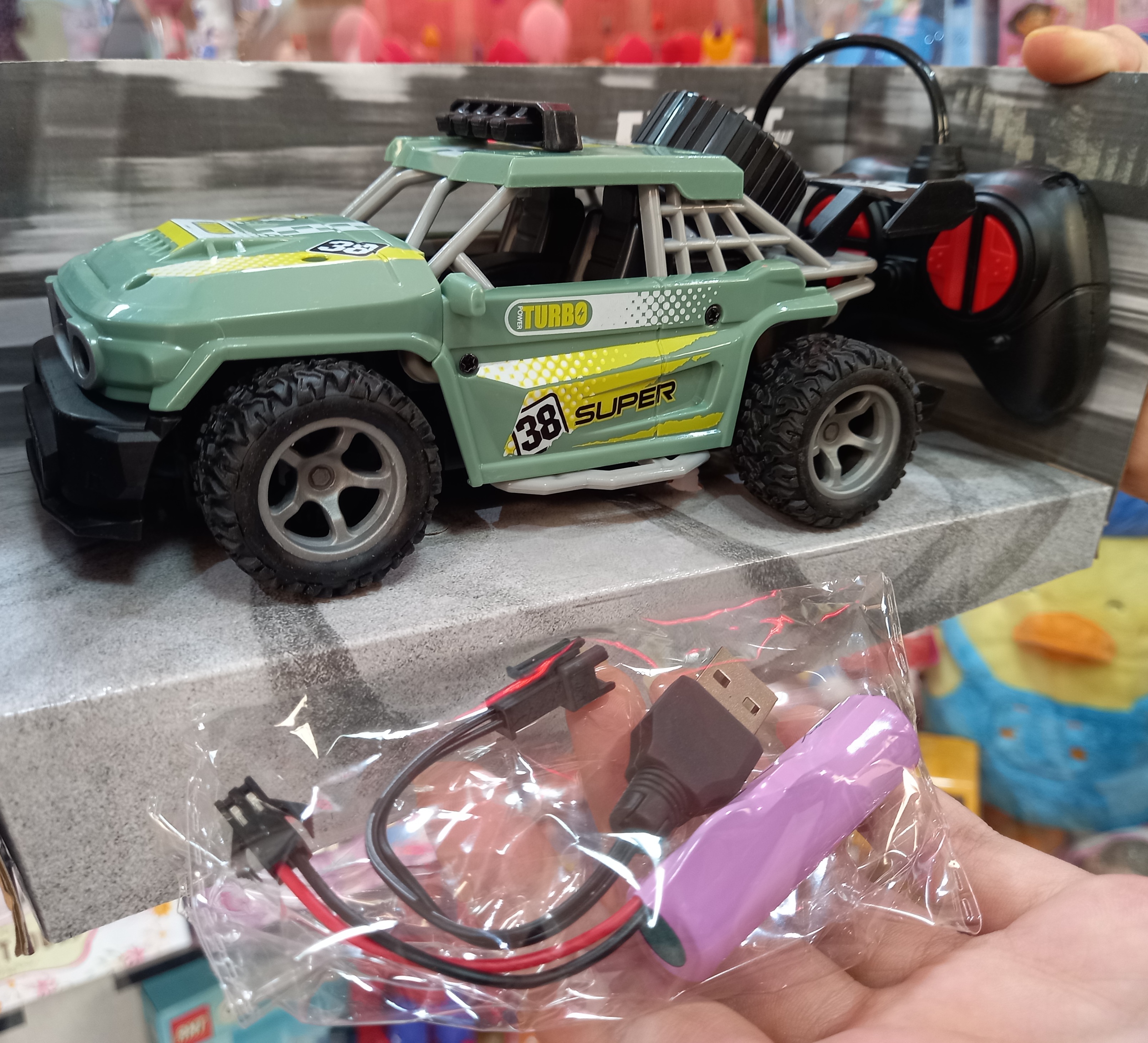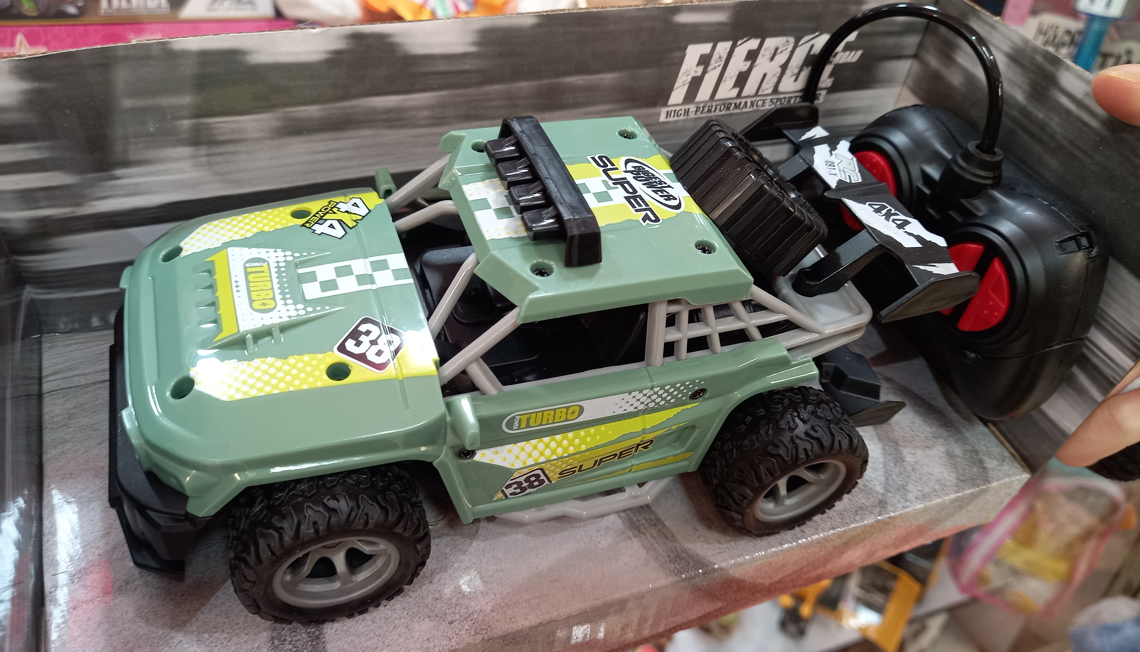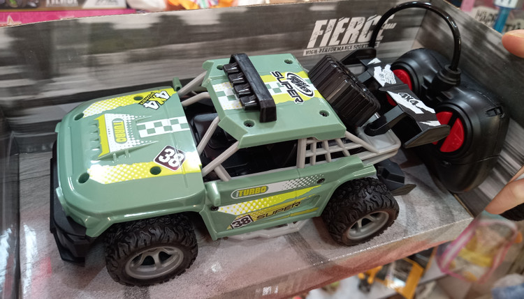 ماشین کنترلی آفرود شارژی میباشد که با فشار دادن دکمه روی کنترل ماشین به سمت راست و چپ و جلو و عقب هدایت میشود.
