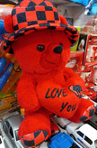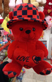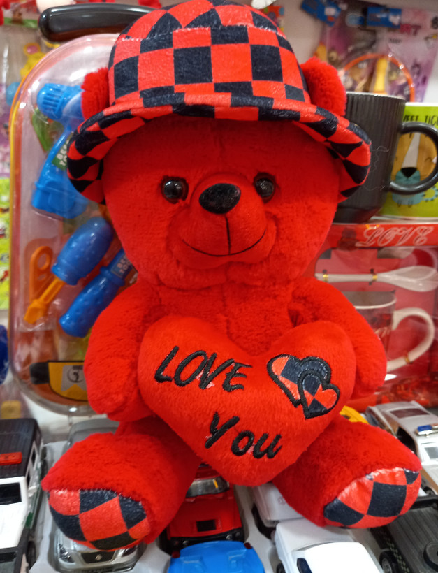عروسک خرس قرمز کلاه دار قلب به دست ۳۰ سانتی Love you