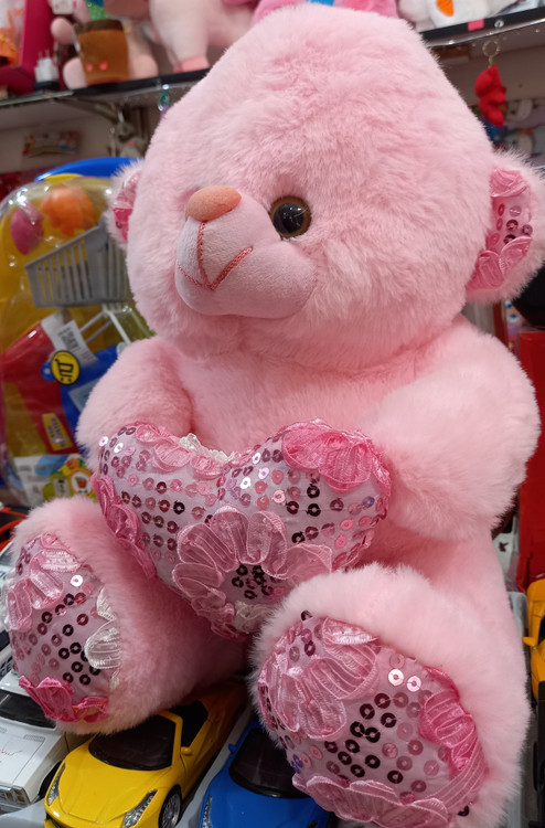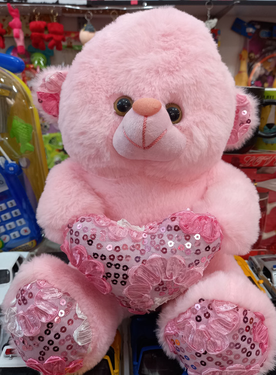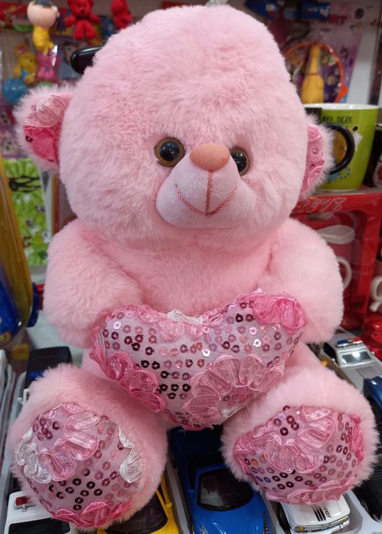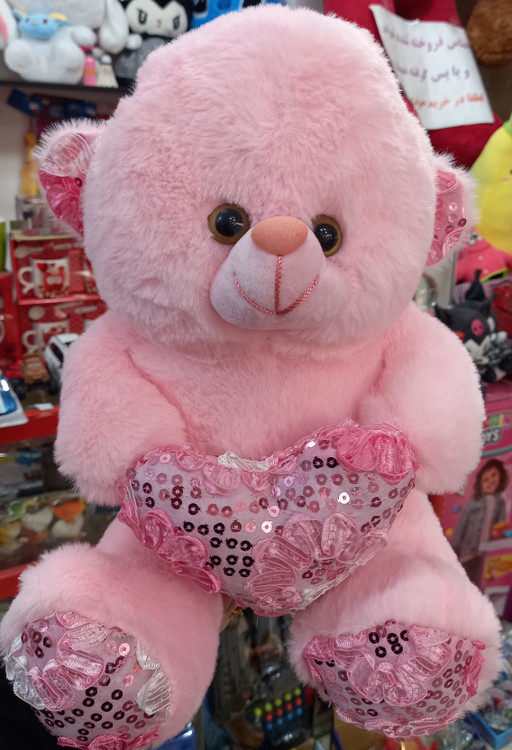 عروسک خرس قلب به دست صورتی اورجینال ۳۵ سانتی